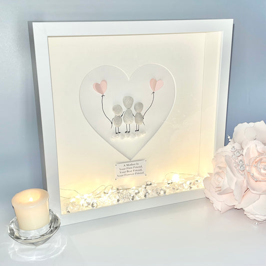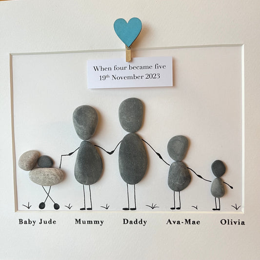 Family with pram pebble art stone picture frame