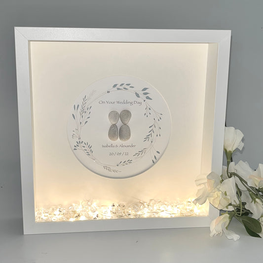 Wedding wreath personalised pebble art picture frame