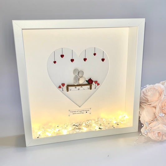 Couples bench personalised pebble art picture frame