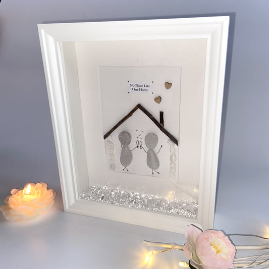 New home couples personalised pebble art picture frame