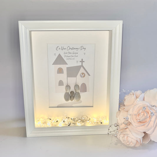 Christening personalised pebble art picture custom frame gift