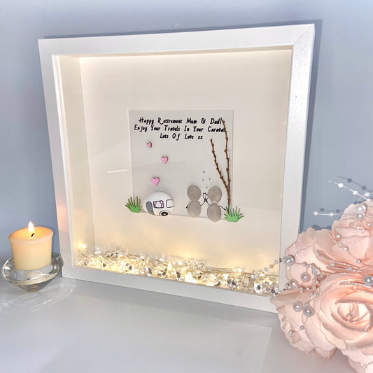 Caravan retirement personalised pebble art picture frame