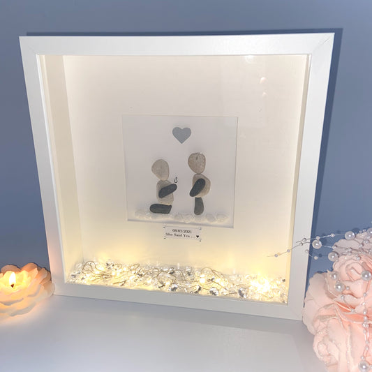 Engagement personalised pebble art picture frame