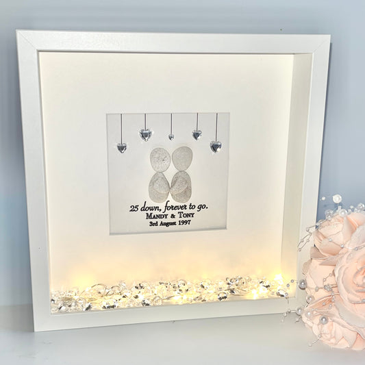 Silver wedding anniversary personalised pebble art picture frame