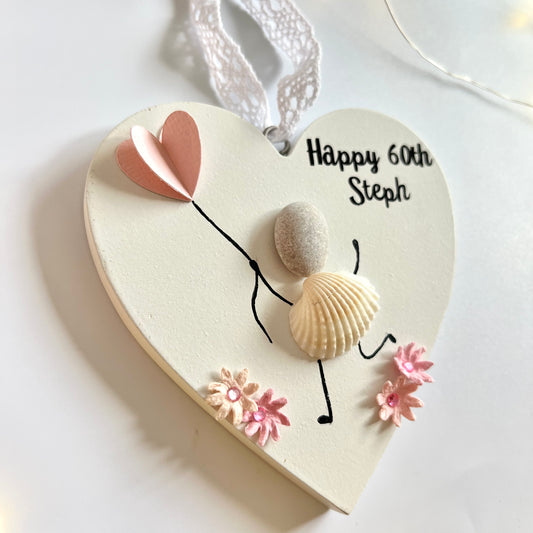 Birthday hanging heart pebble art personalised decoration