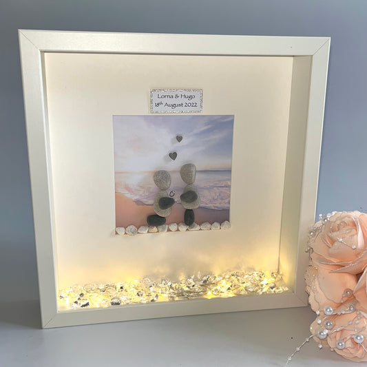 Beach Engagement personalised pebble art picture frame
