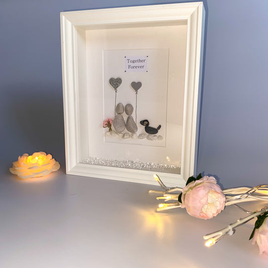 Couples personalised pebble art picture frame with dog